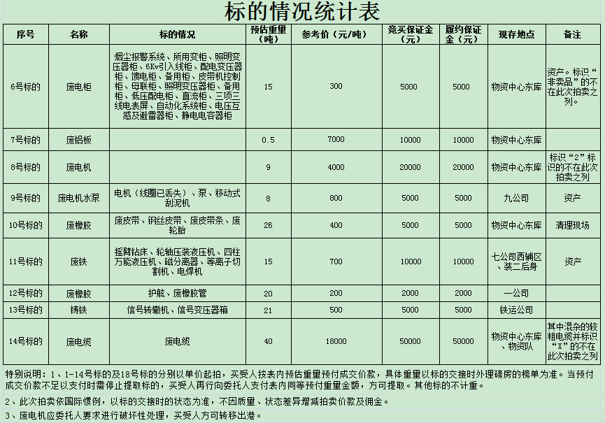 “廢舊設(shè)備、廢電纜、廢電機(jī)、廢鐵等廢舊物資一批”拍品明細(xì)及圖片