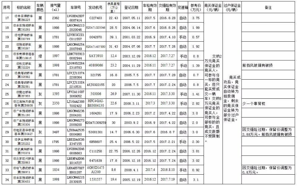 秦皇島市機關公務用車制度改革第二批B包車輛(二)