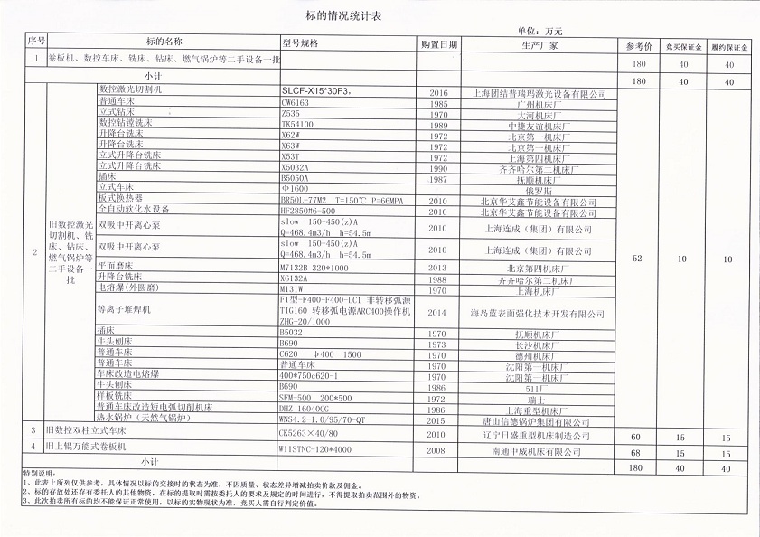 受有關(guān)部門委托,我公司定于2019年6月19日上午9:30時(shí)通過中國(guó)拍賣行業(yè)協(xié)會(huì)網(wǎng)絡(luò)拍賣平臺(tái)對(duì)“卷板機(jī)、數(shù)控車床、銑床、鉆床、燃?xì)忮仩t等二手設(shè)備一批”進(jìn)行公開拍賣。